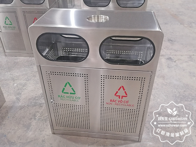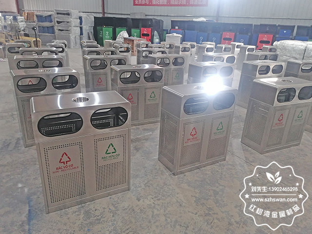 案例名稱:越南某城市公園戶外沖孔不銹鋼分類垃圾桶出口項目