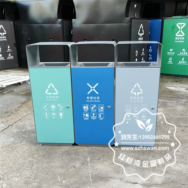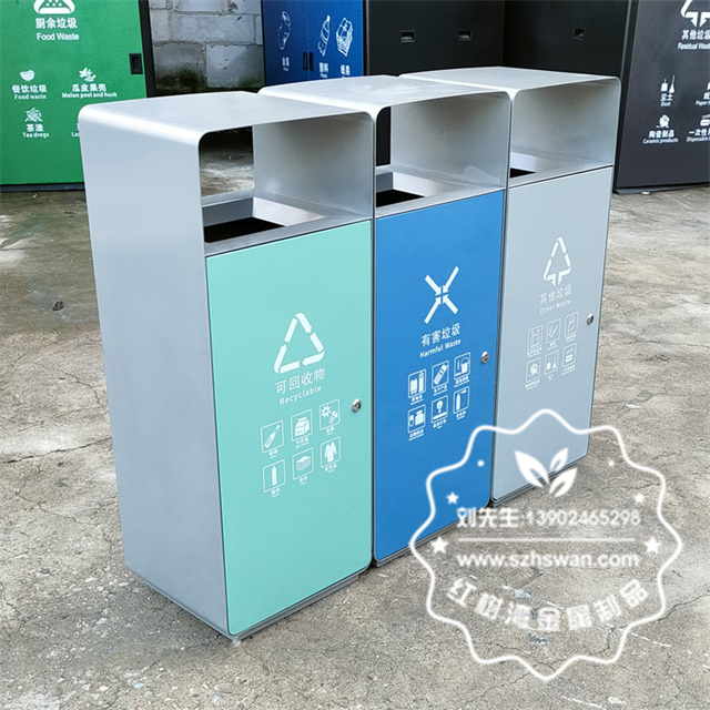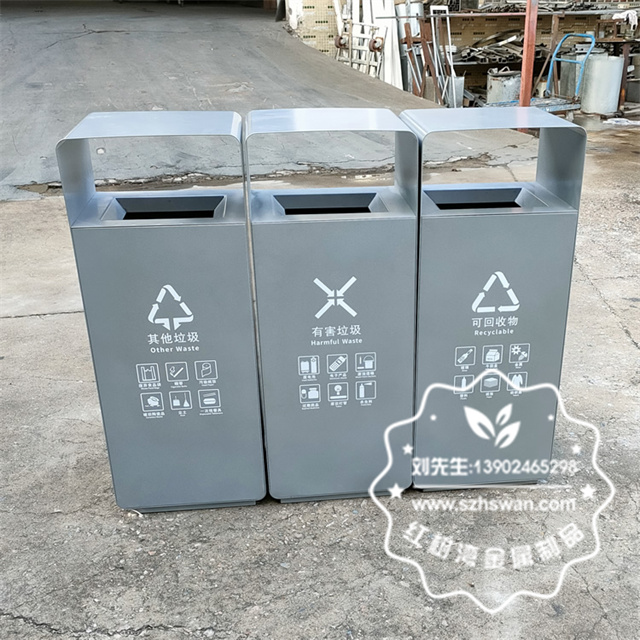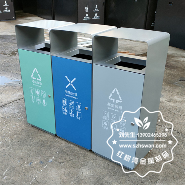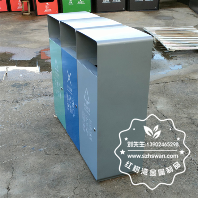 產品材質:戶外自由組合式不銹鋼分類果皮箱采用201#,202#,304#優質不銹鋼材料模壓成型,堅固耐用;內外表面光潔,減少垃圾殘留,易于清潔;配置鍍鋅板內桶,便于垃圾清倒;