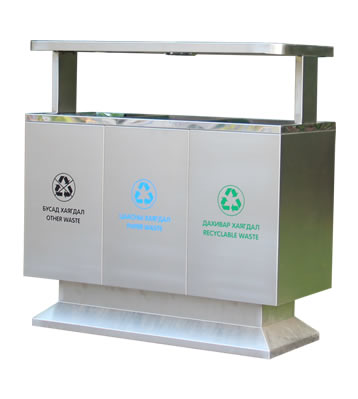 產(chǎn)品型號(hào):C301出口戶外三分類不銹鋼垃圾箱