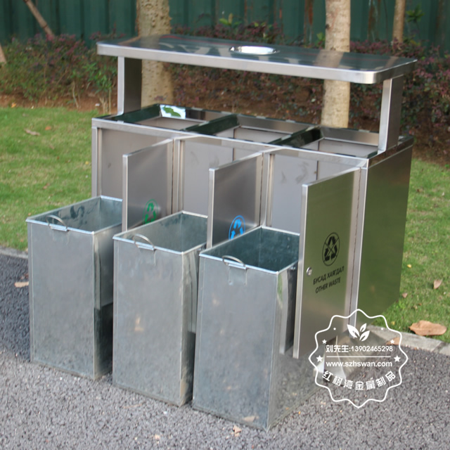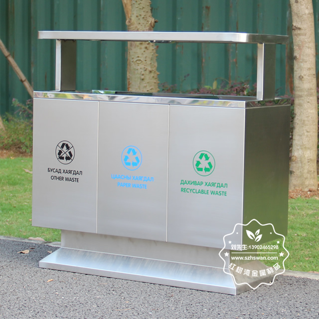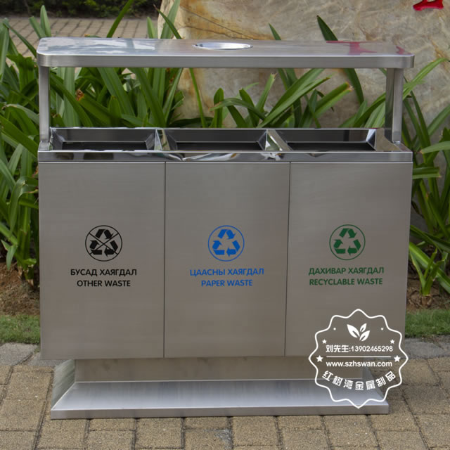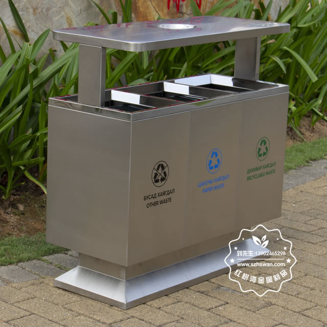 產(chǎn)品材質(zhì):出口戶外三分類不銹鋼垃圾箱采用201#,202#,304#優(yōu)質(zhì)不銹鋼材料模壓成型,堅(jiān)固耐用;內(nèi)外表面光潔,減少垃圾殘留,易于清潔;配置鍍鋅板內(nèi)桶,便于垃圾清倒;