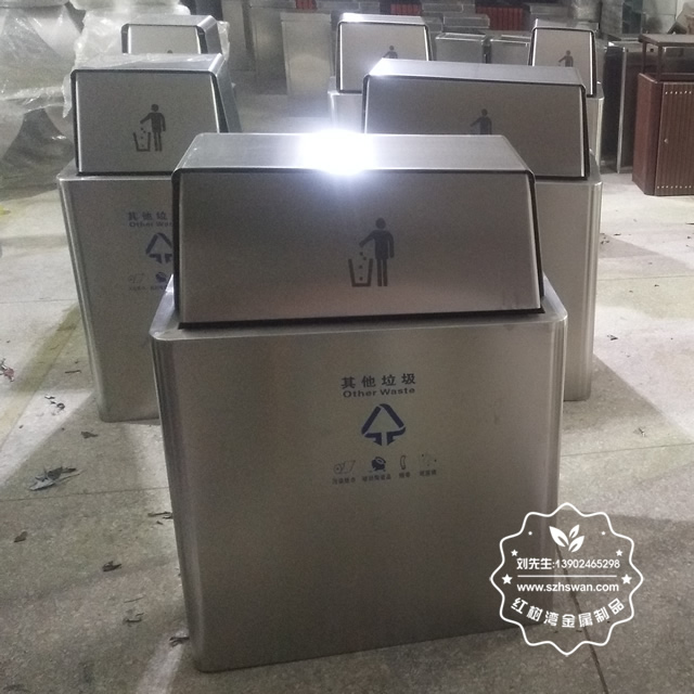 產(chǎn)品材質(zhì):大型方形單筒不銹鋼垃圾桶采用201#,202#,304#優(yōu)質(zhì)不銹鋼材料模壓成型,堅(jiān)固耐用;內(nèi)外表面光潔,減少垃圾殘留,易于清潔;配置鍍鋅板內(nèi)桶,便于垃圾清倒;
