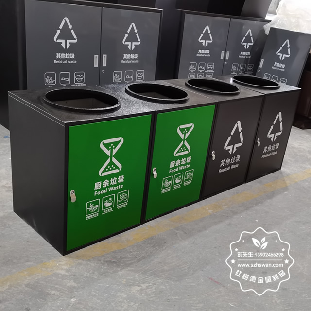產品材質:直投口小區304不銹鋼分類垃圾桶采用201#,202#,304#優質不銹鋼材料模壓成型,堅固耐用;內外表面光潔,減少垃圾殘留,易于清潔;配置鍍鋅板內桶,便于垃圾清倒;