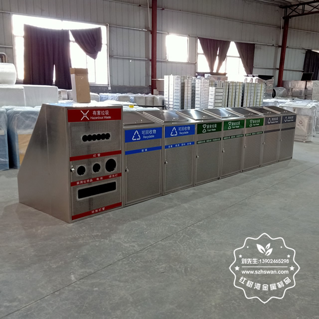 產品材質:戶外大型沖孔不銹鋼分類垃圾桶采用201#,202#,304#優質不銹鋼材料模壓成型,堅固耐用;內外表面光潔,減少垃圾殘留,易于清潔;配置鍍鋅板內桶,便于垃圾清倒;