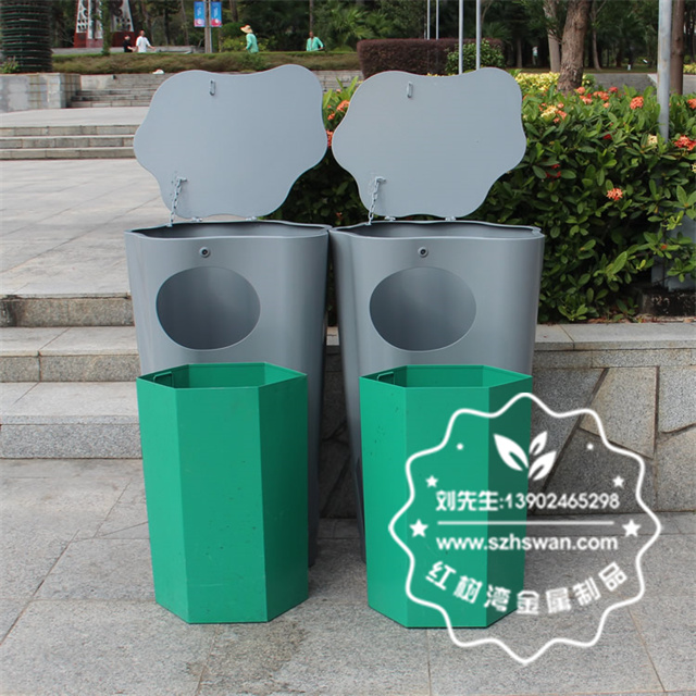 產(chǎn)品材質(zhì):戶(hù)外異形加厚不銹鋼分類(lèi)垃圾桶采用201#,202#,304#優(yōu)質(zhì)不銹鋼材料模壓成型,堅(jiān)固耐用;內(nèi)外表面光潔,減少垃圾殘留,易于清潔;配置鍍鋅板內(nèi)桶,便于垃圾清倒;