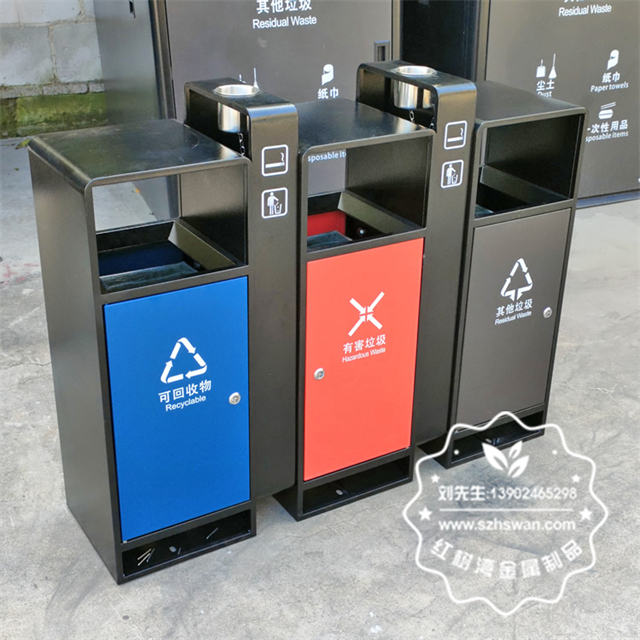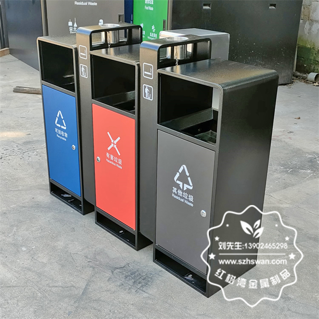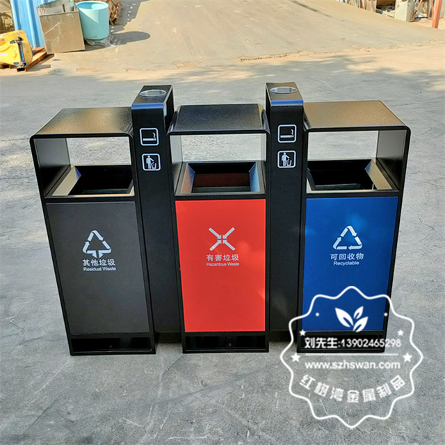 產(chǎn)品材質(zhì):戶外小區(qū)3色連體不銹鋼分類垃圾桶采用201#,202#,304#優(yōu)質(zhì)不銹鋼材料模壓成型,堅(jiān)固耐用;內(nèi)外表面光潔,減少垃圾殘留,易于清潔;配置鍍鋅板內(nèi)桶,便于垃圾清倒;