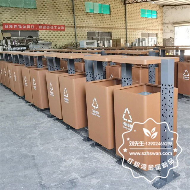 產(chǎn)品材質(zhì):惠州戶外景區(qū)兩連體不銹鋼分類垃圾桶采用201#,202#,304#優(yōu)質(zhì)不銹鋼材料模壓成型,堅固耐用;內(nèi)外表面光潔,減少垃圾殘留,易于清潔;配置鍍鋅板內(nèi)桶,便于垃圾清倒;