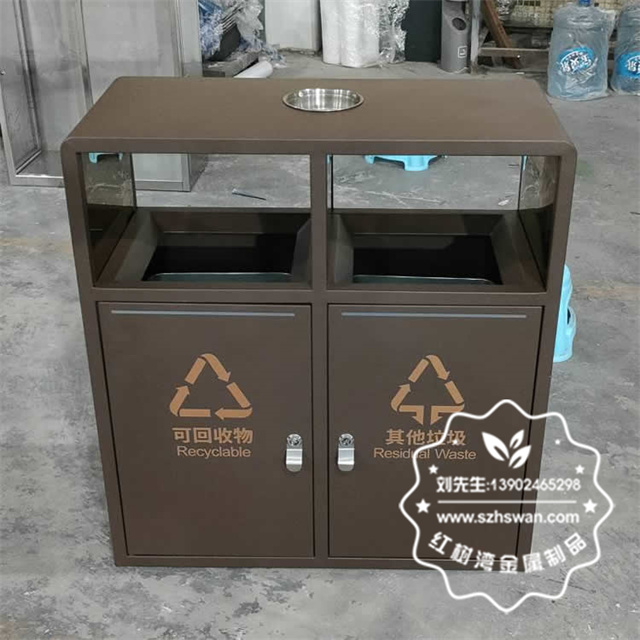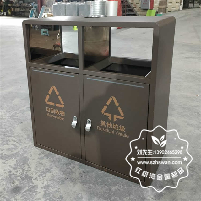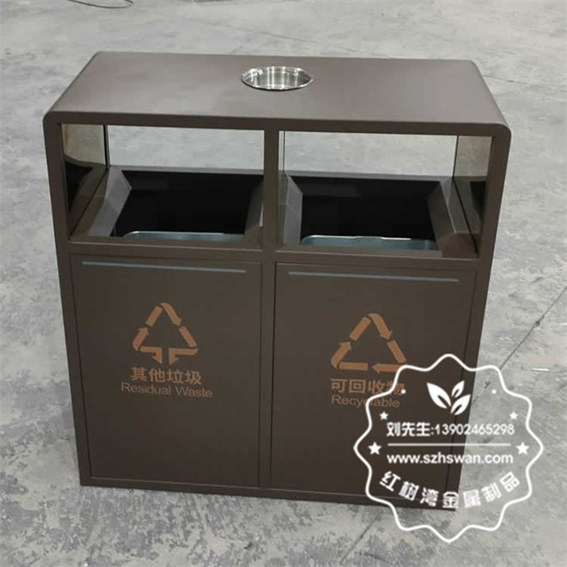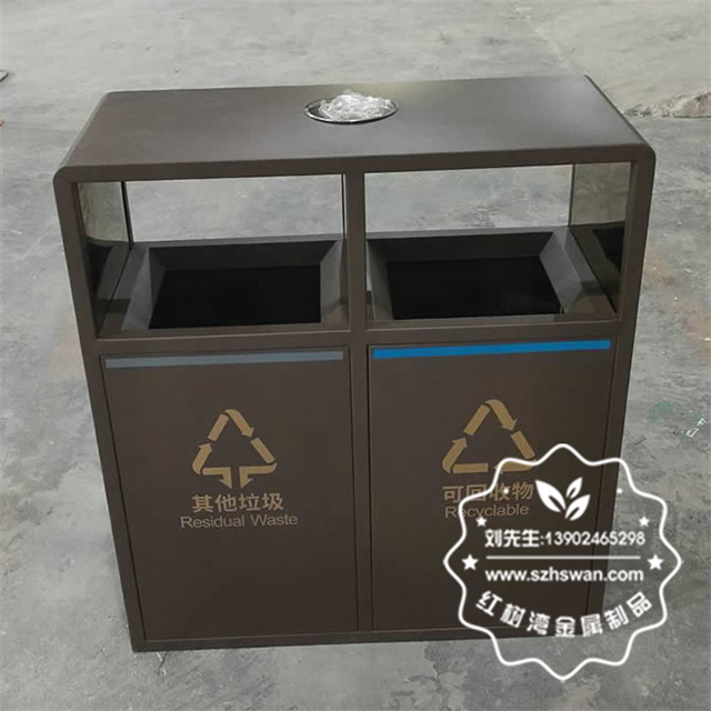 產品材質:戶外噴塑烤漆兩連體不銹鋼垃圾桶采用201#,202#,304#優質不銹鋼材料模壓成型,堅固耐用;內外表面光潔,減少垃圾殘留,易于清潔;配置鍍鋅板內桶,便于垃圾清倒;