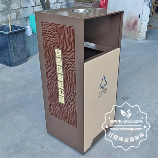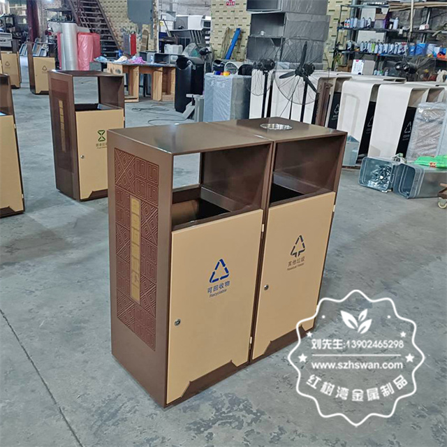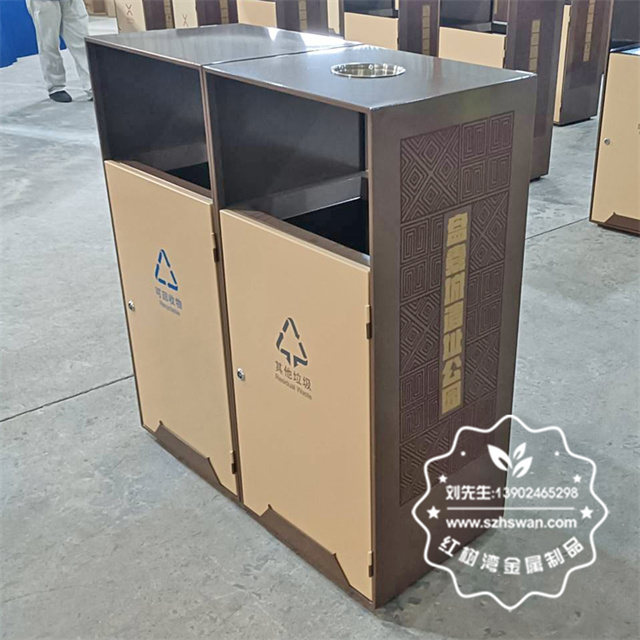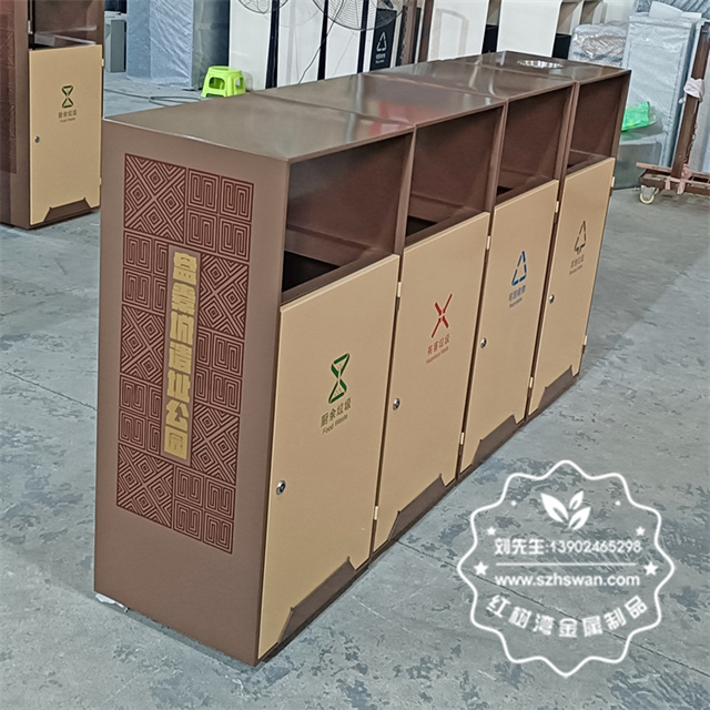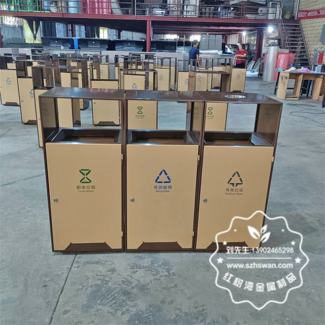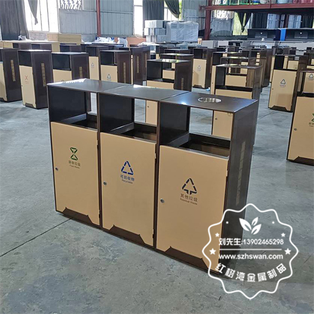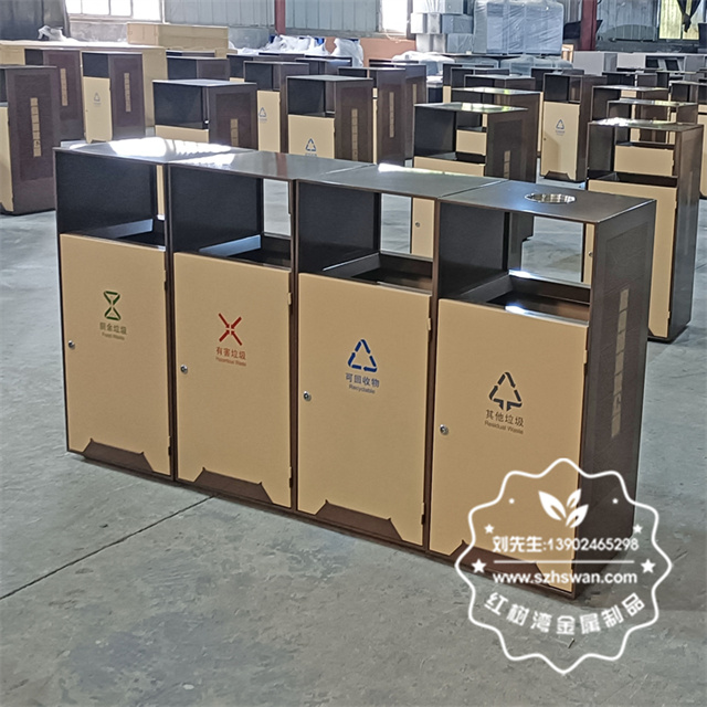 產品材質:戶外公園景區組合式分類不銹鋼垃圾桶采用201#,202#,304#優質不銹鋼材料模壓成型,堅固耐用;內外表面光潔,減少垃圾殘留,易于清潔;配置鍍鋅板內桶,便于垃圾清倒;
