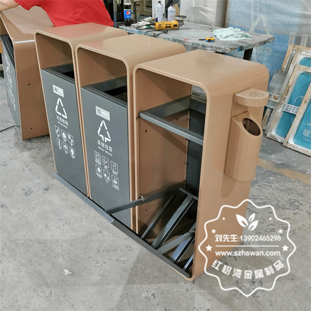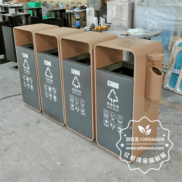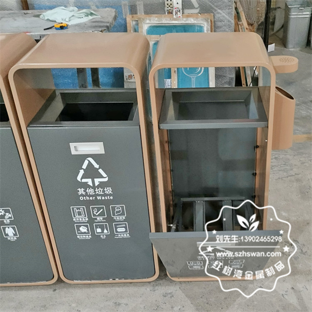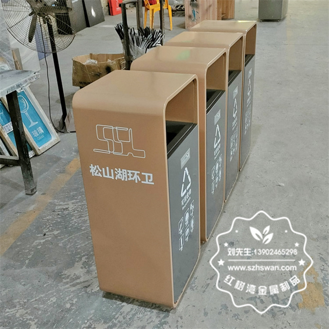產品材質:廣東東莞松山湖電鍍不銹鋼分類垃圾桶采用201#,202#,304#優質不銹鋼材料模壓成型,堅固耐用;內外表面光潔,減少垃圾殘留,易于清潔;配置鍍鋅板內桶,便于垃圾清倒;