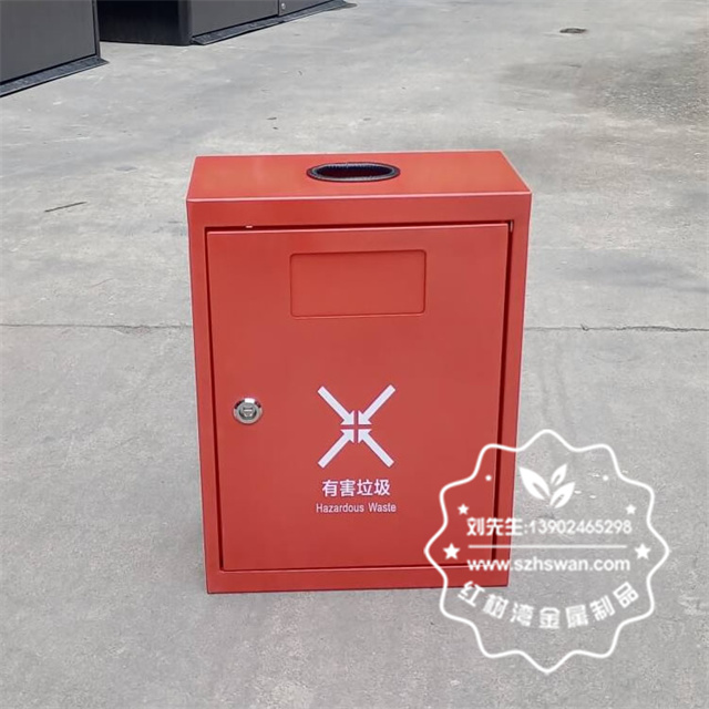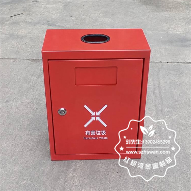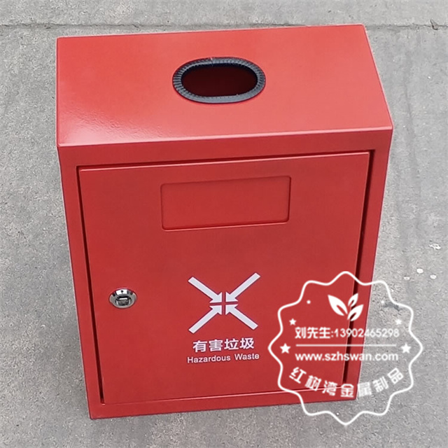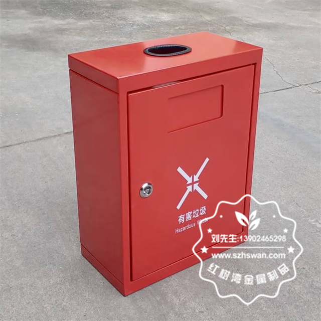 戶外方形掛壁式紅色烤漆不銹鋼有害垃圾桶
