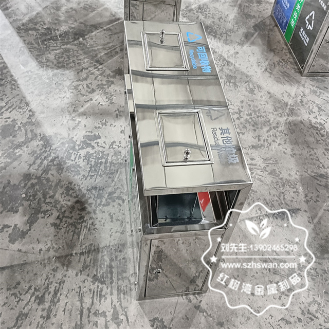 戶外市政街道鏡面拋光不銹鋼分類垃圾桶采用優(yōu)質(zhì)201不銹鋼無縫焊接成型,投口模具沖壓成型,邊角精細打磨拋光圓滑不割手,高檔大氣。