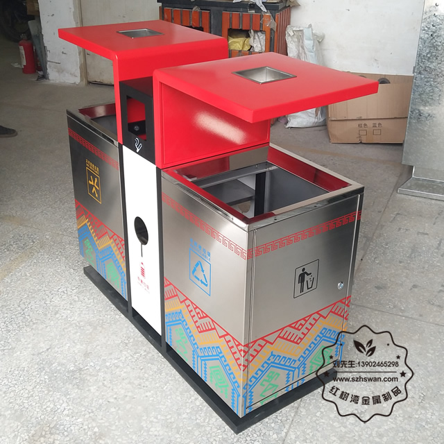 產品材質:創意UV打印戶外分類不銹鋼垃圾桶采用201#,202#,304#優質不銹鋼材料模壓成型,堅固耐用;內外表面光潔,減少垃圾殘留,易于清潔;配置鍍鋅板內桶,便于垃圾清倒;