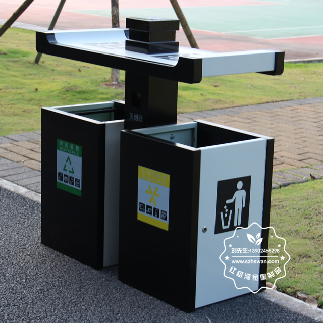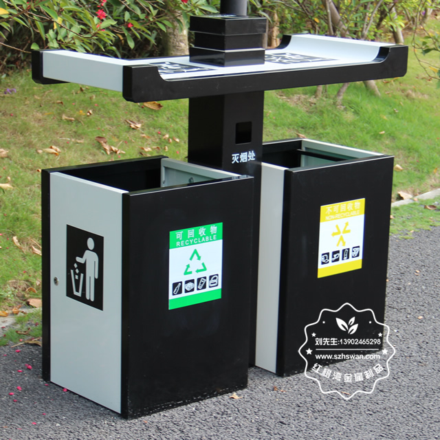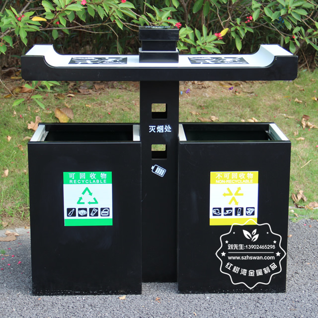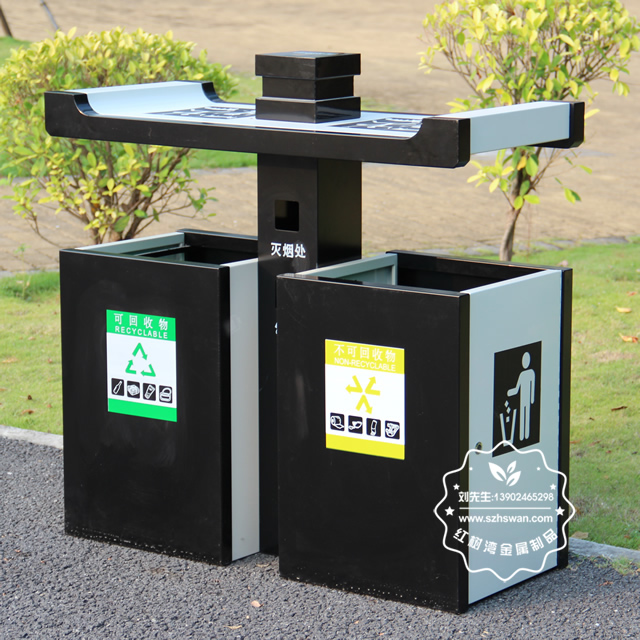 產(chǎn)品材質(zhì):戶外小區(qū)兩分類鋼制垃圾箱表面經(jīng)過除油、噴砂防銹處理后,再進(jìn)行酸洗磷化處理;表面清理后整體進(jìn)行靜電噴涂或烤漆處理,靜電噴涂是經(jīng)過流水線高溫固化爐固化后再出爐冷卻,漆面色澤耐久,防腐防銹;