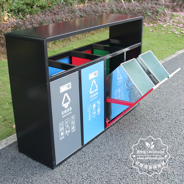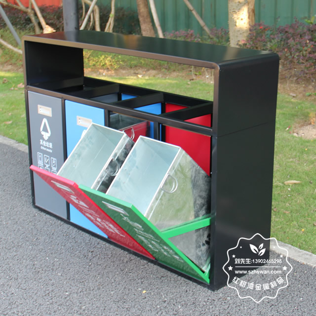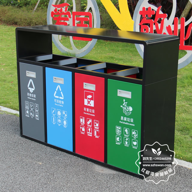 產(chǎn)品材質(zhì):戶外噴塑四分類鋼制垃圾箱表面經(jīng)過除油、噴砂防銹處理后,再進行酸洗磷化處理;表面清理后整體進行靜電噴涂或烤漆處理,靜電噴涂是經(jīng)過流水線高溫固化爐固化后再出爐冷卻,漆面色澤耐久,防腐防銹;