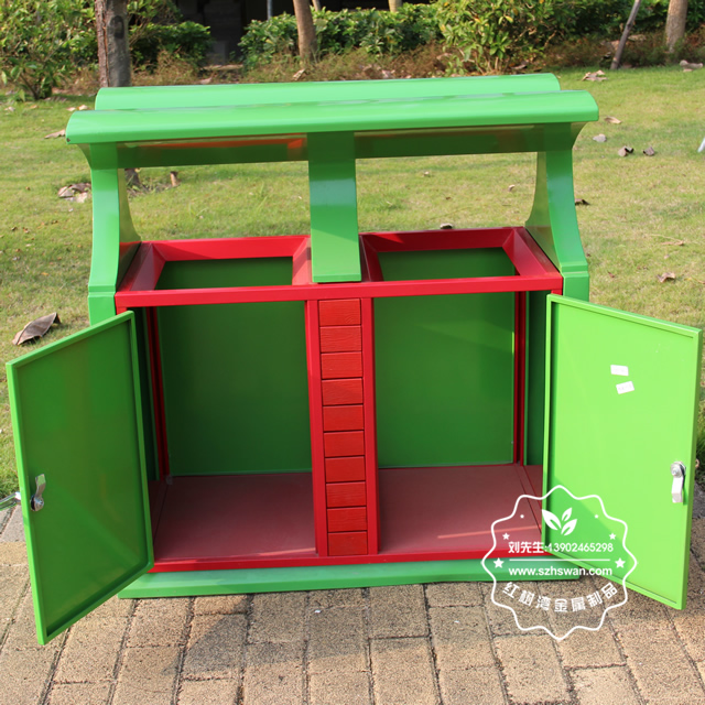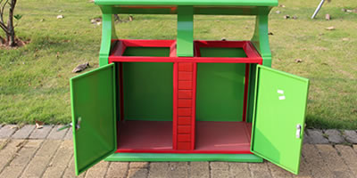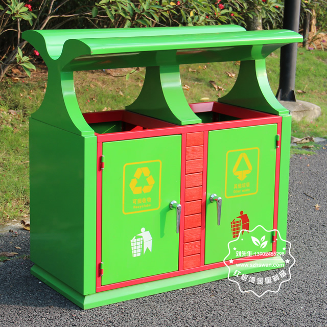 戶外園林雙分類鋼制垃圾箱經酸洗磷化防銹處理,經高溫固化爐加工后的塑粉附著力強,表面防腐防銹能力是未經酸洗磷化處理的3倍。