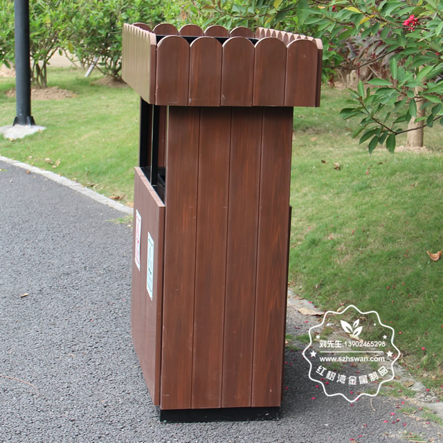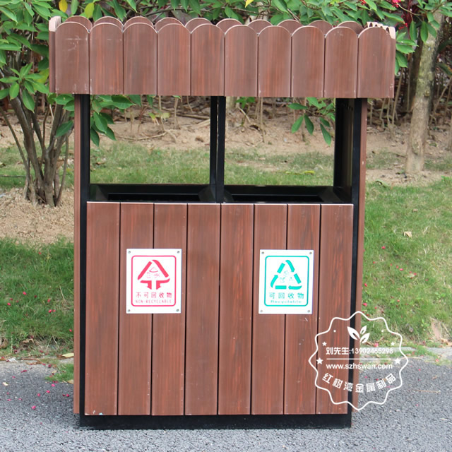 產(chǎn)品型號(hào):G138環(huán)保塑木花箱鋼木分類垃圾桶