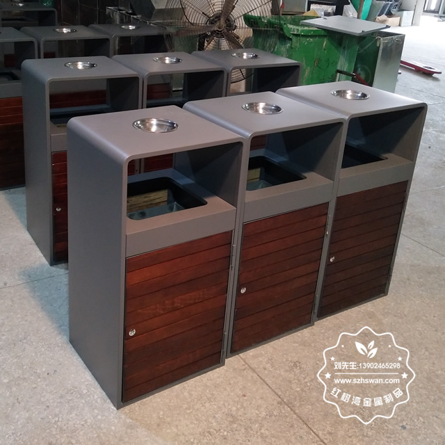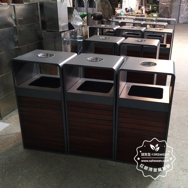 產品材質:戶外組合式鋼木分類垃圾桶鋼木部分可選用優質進口山樟木、防腐木或塑木,經防腐烘干處理后加工成型。桶身框架采用冷軋鋼板加工,表面經酸洗磷化噴塑處理組裝而成,使其戶外耐候持久,防腐防蛀不變形等優點;