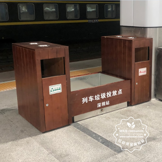 產品材質:火車站大型鋼木分類垃圾箱鋼木部分可選用優質進口山樟木、防腐木或塑木,經防腐烘干處理后加工成型。桶身框架采用冷軋鋼板加工,表面經酸洗磷化噴塑處理組裝而成,使其戶外耐候持久,防腐防蛀不變形等優點;