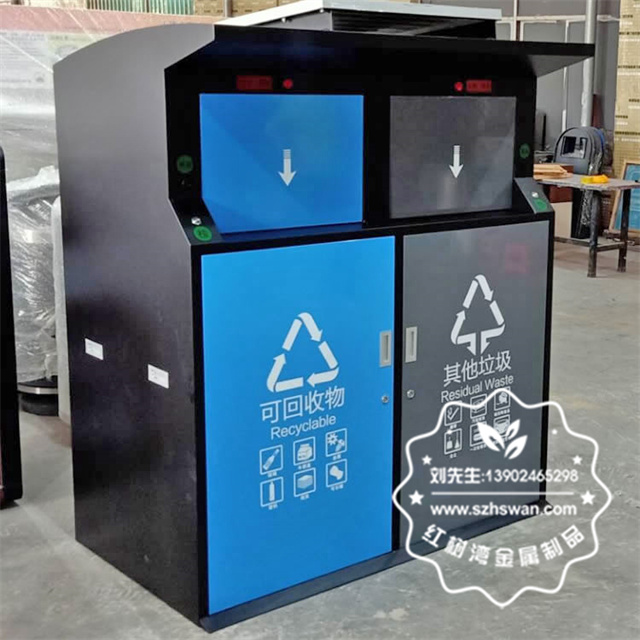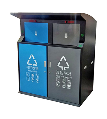 產(chǎn)品型號:F431-2戶外社區(qū)智能感應(yīng)鍍鋅板分類垃圾桶