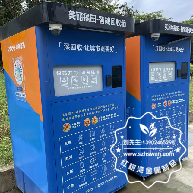 產品材質:戶外噴塑烤漆鍍鋅板回收箱柜子表面經過除油、噴砂防銹處理后,再進行酸洗磷化處理;表面清理后整體進行靜電噴涂或烤漆處理,靜電噴涂是經過流水線高溫固化爐固化后再出爐冷卻,漆面色澤耐久,防腐防銹;