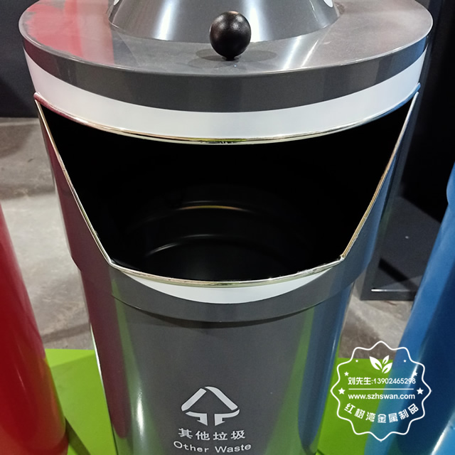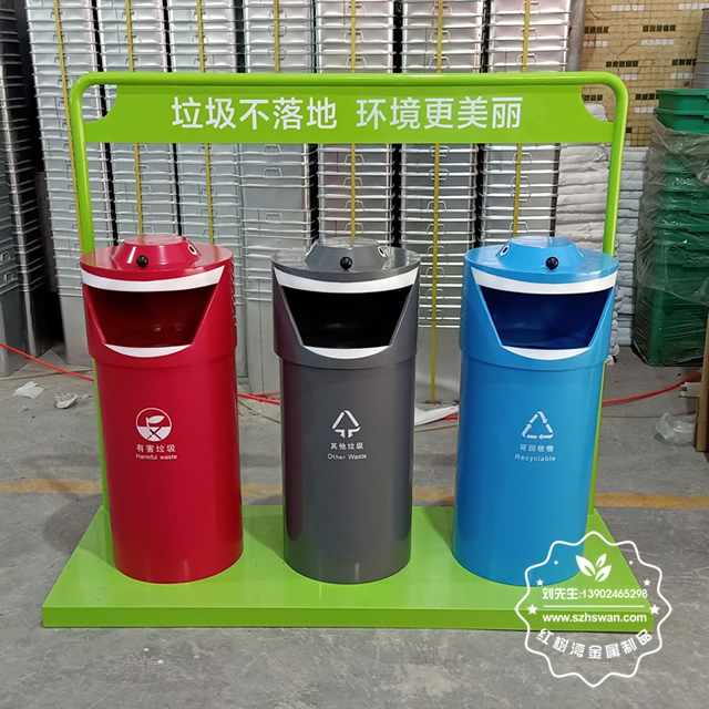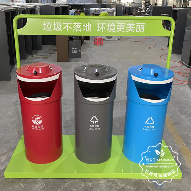 產(chǎn)品材質(zhì):戶外烤漆三分類鋼板垃圾桶表面經(jīng)過除油、噴砂防銹處理后,再進(jìn)行酸洗磷化處理;表面清理后整體進(jìn)行靜電噴涂或烤漆處理,靜電噴涂是經(jīng)過流水線高溫固化爐固化后再出爐冷卻,漆面色澤耐久,防腐防銹;