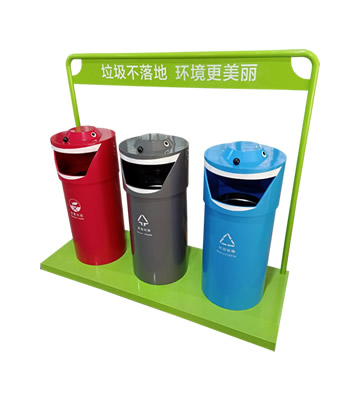產(chǎn)品型號(hào):HSW-F424戶外烤漆三分類鋼板垃圾桶