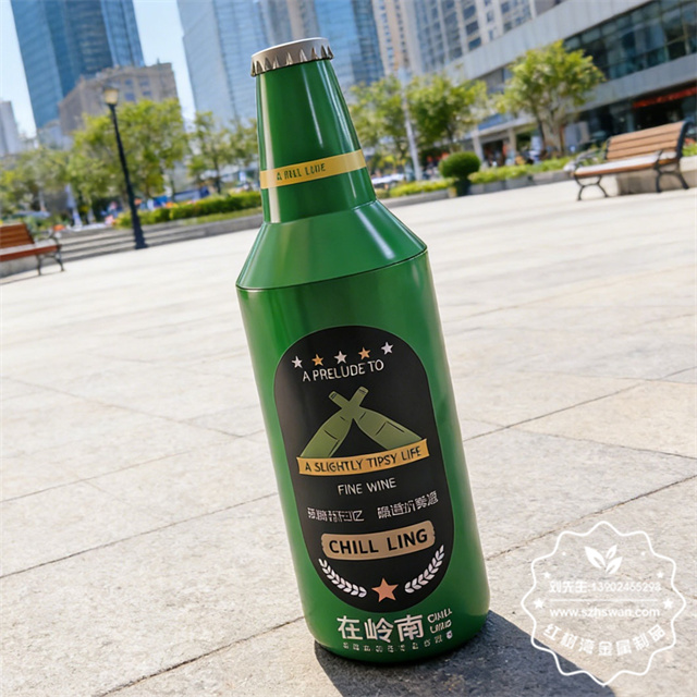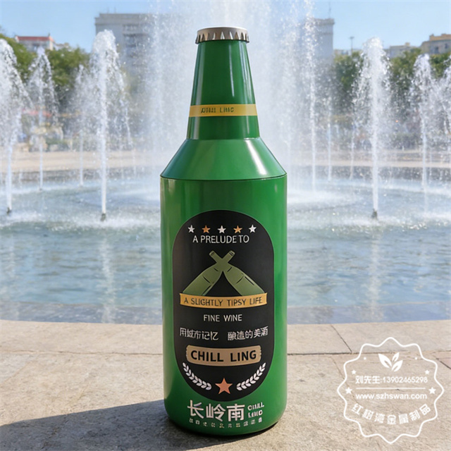 產品型號:XFZ-F535戶外啤酒瓶造型鍍鋅板鐵皮垃圾桶