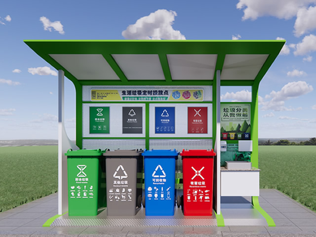 垃圾分類亭是垃圾分類工作中投放的可以為環衛垃圾桶、垃圾分類回收箱、舊衣回收箱等提供遮陽避雨的設施,垃圾分類亭不僅能節約資源,開展垃圾分類,有利于資源的回收再利用,同時也可以減少環境污染。