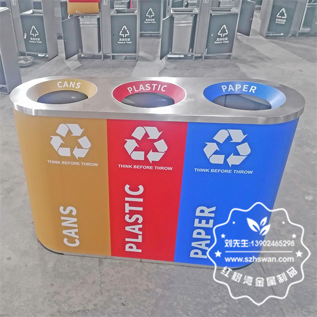 通過這種分類方式,室內車站直投口兩分類不銹鋼垃圾桶可以有效地促進垃圾分類工作,提高資源回收利用率,同時也有助于維護車站環境的整潔和衛生。