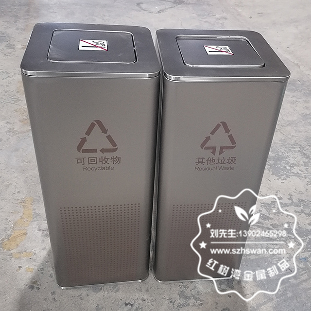 按照國家垃圾分類標準,將垃圾分為可回收物、有害垃圾、廚余垃圾和其他垃圾四類。對于學校而言,可回收物主要包括紙張、塑料瓶、易拉罐等;有害垃圾如廢舊電池、過期藥品、熒光燈管等;廚余垃圾主要來源于食堂;其他垃圾則涵蓋了難以回收的廢棄物。定制的金屬分類垃圾桶應清晰標注各類垃圾的投放標識,便于師生準確分類投放。