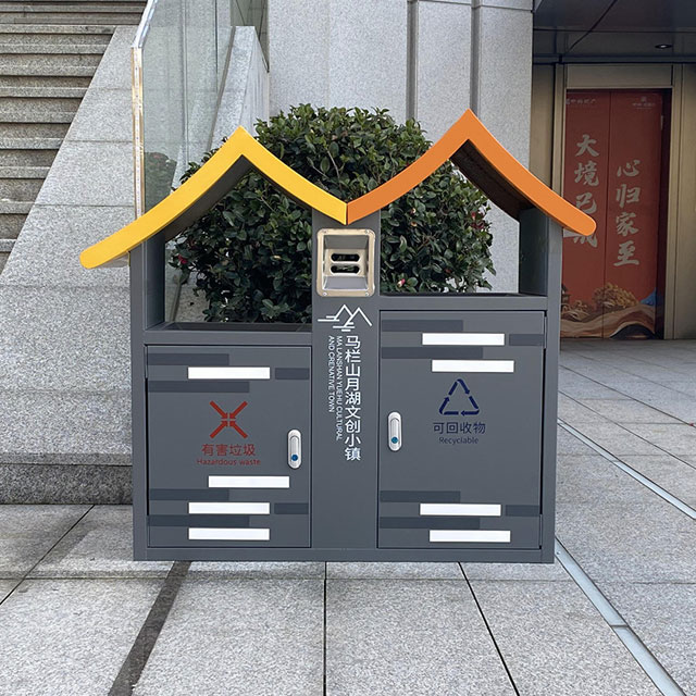 這款垃圾桶最吸引人的地方,便是其別出心裁的屋形設計。它的造型宛如一座小巧的房屋,給人一種溫馨而獨特的感覺。這種創意設計不僅打破了傳統垃圾桶單調的形象,還能很好地融入各種戶外場景,無論是在公園、小區花園,還是旅游景區,都能成為一道別樣的風景線。它為人們的生活增添了一份趣味,讓垃圾分類不再枯燥。