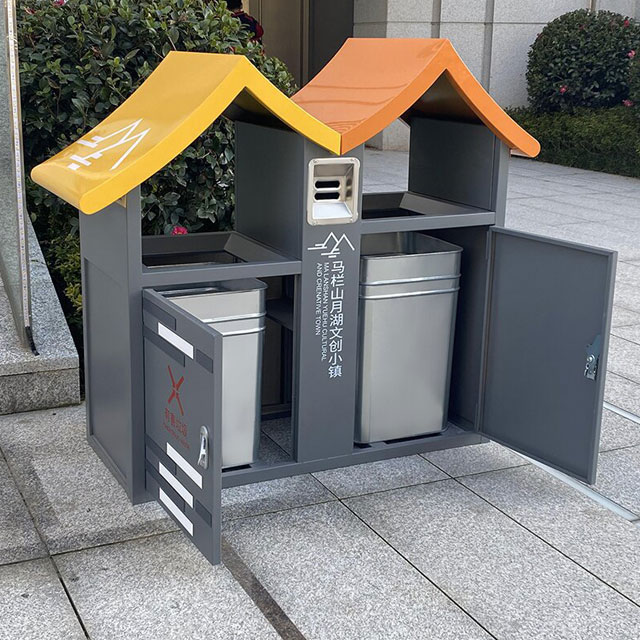 因其獨特的設計和實用的功能,這款屋形戶外兩連體不銹鋼分類垃圾桶擁有廣泛的應用場景。在公園中,它與自然景觀相互映襯,引導游客進行垃圾分類;在住宅小區,它為居民提供便捷的垃圾投放方式,提升小區的整體環境品質;在商業街區,它能幫助維持街道的整潔,給顧客留下良好的印象。