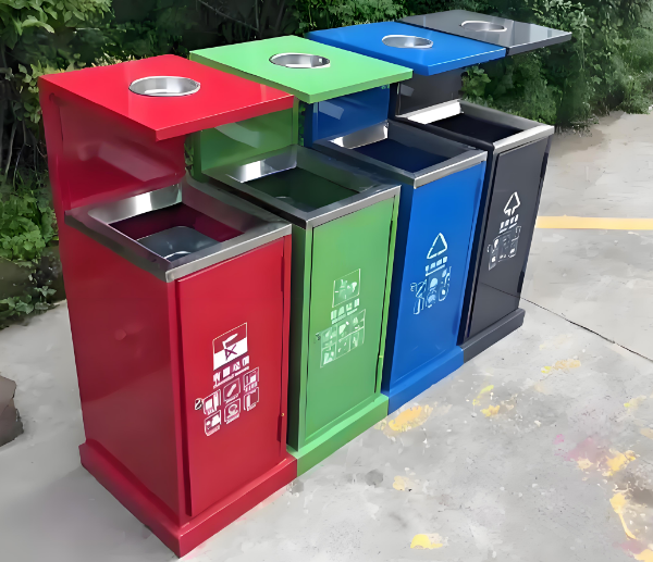 鮮明的四色設計遠非簡單的視覺裝飾。藍色(可回收物)、綠色(廚余垃圾)、紅色(有害垃圾)、灰色(其他垃圾)的標準化配置,通過直觀的色彩語言引導市民進行垃圾分類。這種無聲的環(huán)保教育,潛移默化地培養(yǎng)公眾環(huán)保習慣,使垃圾分類從政策要求轉(zhuǎn)變?yōu)樽杂X行動。