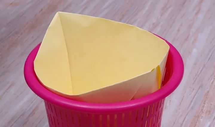 垃圾桶是人們生活中必不可少的小幫手,各種垃圾都會往里邊扔,雖然平時大家都會給它套一個袋子,可仍然避免不了油水滲出,這些殘留的污水放久了很容易產生異味,影響室內環境。 每天清洗垃圾桶實在太麻煩了,怎樣才能避免垃圾桶底部沾上油水呢?老師來支招,現在就一起學起來吧!解決這個問題,我們需要一張普普通通的紙,家里的報紙、舊日歷紙都可以。先將紙裁成正方形,然后對折成一個大三角形。把三角形的2個角往頂點折,用手壓一下,使它的折痕更明顯。把這2個角展開,記下折痕的端點。像這樣把2個角分別折到對邊的中點。把上面的直角三角形翻下來,展開,一個“口袋”就出現了。將口袋墊在垃圾桶里,再套上塑料袋,這個防臟墊就能吸收滲透出來的污漬,起到很好的隔離作用,更換時候也非常方便。