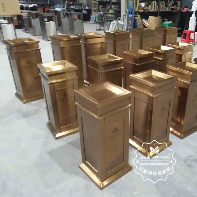 電梯口垃圾桶就是裝放垃圾的箱子,也叫垃圾箱、果皮箱、煙灰桶。本廠提供:不銹鋼垃圾桶(垃圾箱),不銹鋼煙灰桶、不銹鋼果皮箱(果皮桶),酒店大堂垃圾桶,賓館煙灰桶,樓梯口果皮箱,戶外垃圾桶,戶外分類環(huán)保果皮箱,電梯口垃圾桶,高檔垃圾桶(果皮箱、煙灰桶),鈦金垃圾桶/煙灰桶/果皮箱等。垃圾桶就使用場合可分為公共垃圾桶和家庭垃圾桶。就盛放垃圾形式可分為獨立垃圾桶和分類垃圾桶。就加工材料可分為塑料垃圾桶、不銹鋼垃圾桶、陶瓷垃圾桶、木質垃圾桶、水泥垃圾桶和紙漿垃圾桶等等。就開啟方式有敞口式、揭蓋式、踩踏開蓋、感應式(紅外線)等。垃圾桶是社會文化的一種折射。