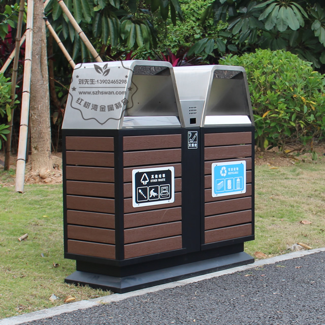 6、塑木垃圾桶:一般由鋼板焊接出結(jié)構(gòu),結(jié)構(gòu)表面噴塑處理,在結(jié)構(gòu)上裝置木條。市面上流轉(zhuǎn)的塑木垃圾桶,結(jié)構(gòu)原料與鋼板垃圾桶原料相同,有兩種樣式,即冷軋鋼和鍍鋅板。