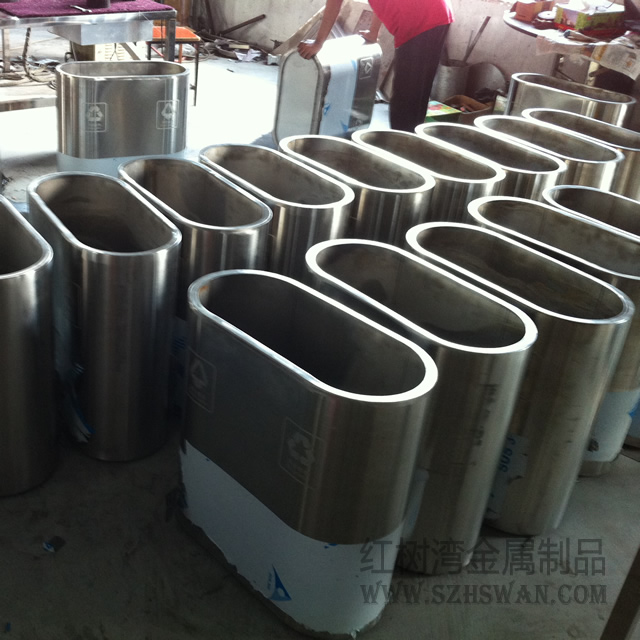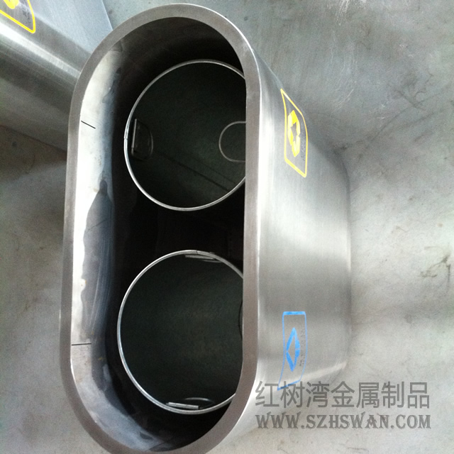 這款室內不銹鋼分類垃圾桶采用的是304不銹鋼材質先裁剪、壓制、模具沖壓折邊拼焊制造的桶為斜口方便扔廢物,焊接是采用進口焊接機是紅樹灣的老師傅手工焊接的;垃圾桶表面采用機器打磨拋光處理技術桶身光亮而鮮艷超有金屬質感,制作精良注重細節(jié)無利口不傷手;此款不銹鋼分類垃圾桶放在室內顯得室內的商場格外豪華奢侈。