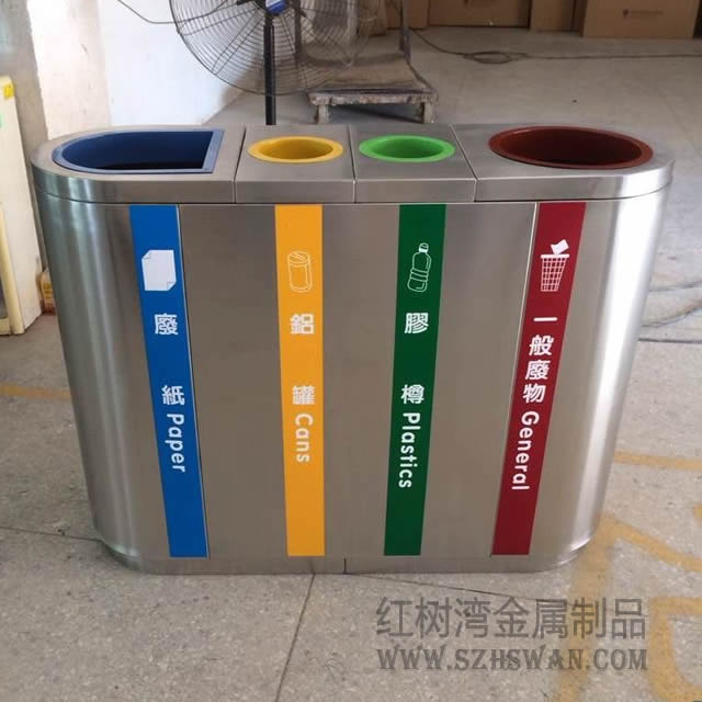 這款垃圾桶是白云機場的招標項目,這款垃圾桶包括制作設計安裝擺放,交期緊張紅樹灣日夜趕工生產出來了以下這款四分類不銹鋼垃圾桶,紅樹灣設計的產品符合國家規定的相應技術標準和I環保標準。