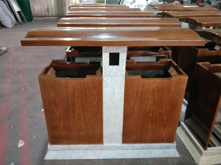 基本外觀外形制作完成,仿木加仿石相結(jié)合的不銹鋼垃圾桶,最后一道制作工序便是對(duì)外觀防紫外線處理及表面內(nèi)容的制作。