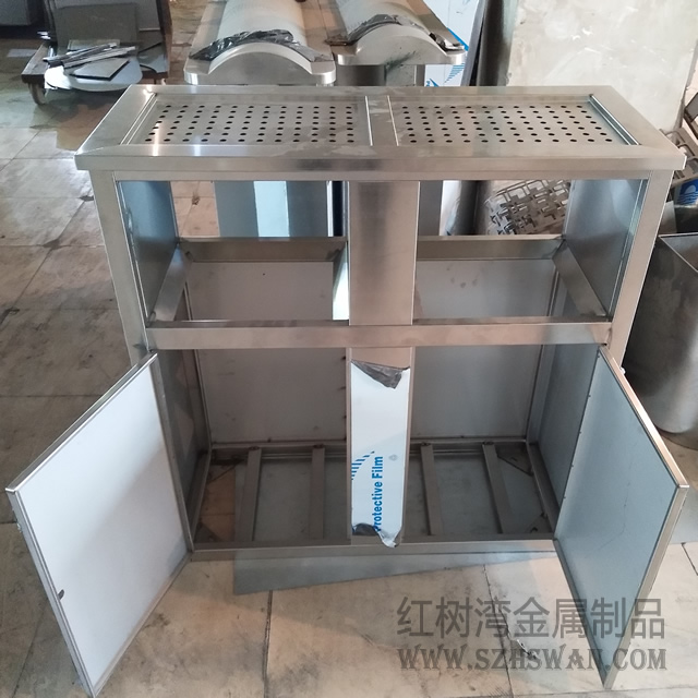 惠城區市政客戶要求定制全不銹鋼材質制作不銹鋼分類垃圾桶,板材加厚,要求焊點平滑、外觀細致,因不銹鋼沒有上色這個道工序,所以對焊接工藝要求較高,要求焊工技術熟練,焊口規范,焊接牢固,焊點一致。 紅樹灣的交付流程主要包括產品設計、物料采購、生產制造及物流運輸等4個主要環節。紅樹灣一直所追求的靈活的流程體系、穩定的制造流程及柔性化的生產體系,為客戶的訂單交付提供了堅實的保證。  由于該訂單的產品是戶外不銹鋼分類垃圾桶,可以保證紅樹灣交付團隊在產品設計的同時并行進行原材料的采購,以保證交付時間滿足客戶的需求。
