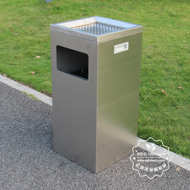 室內方形不銹鋼果皮煙灰桶采用優質201不銹鋼無縫焊接成型,投口模具沖壓成型,邊角精細打磨拋光圓滑不割手,高檔大氣。