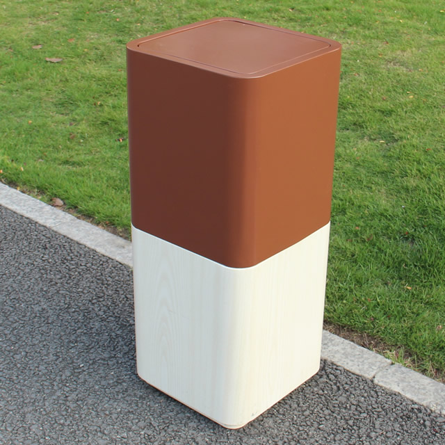 產品材質:電鍍仿木紋室內方形不銹鋼果皮箱采用201#,202#,304#優質不銹鋼材料模壓成型,堅固耐用;內外表面光潔,減少垃圾殘留,易于清潔;配置鍍鋅板內桶,便于垃圾清倒;