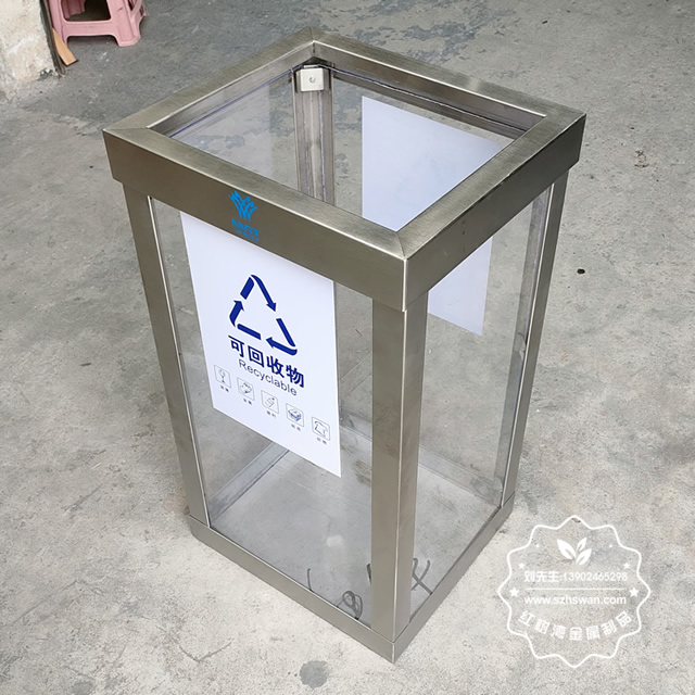 產品材質:地鐵站透明防爆不銹鋼垃圾桶采用201#,202#,304#優質不銹鋼材料模壓成型,堅固耐用;內外表面光潔,減少垃圾殘留,易于清潔;配置鍍鋅板內桶,便于垃圾清倒;