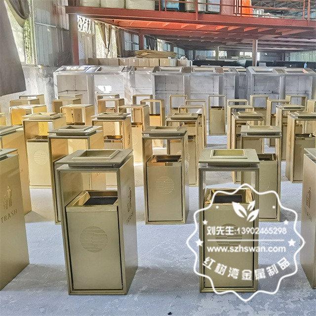 產(chǎn)品型號(hào):C413室內(nèi)方形電梯口電鍍不銹鋼垃圾桶