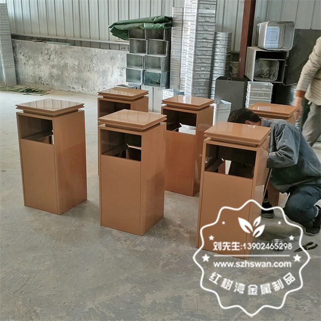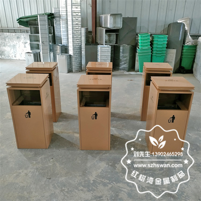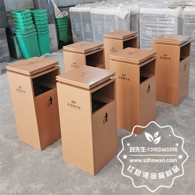 產品材質:物業小區電梯口噴塑不銹鋼果皮箱采用201#,202#,304#優質不銹鋼材料模壓成型,堅固耐用;內外表面光潔,減少垃圾殘留,易于清潔;配置鍍鋅板內桶,便于垃圾清倒;