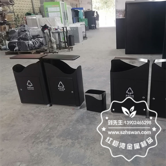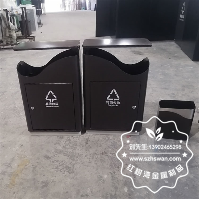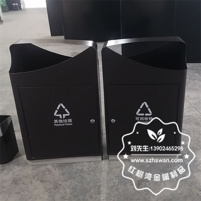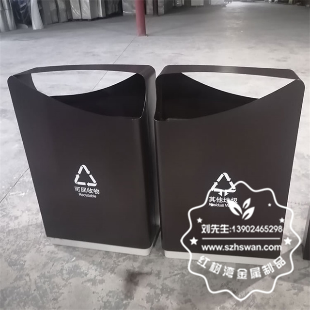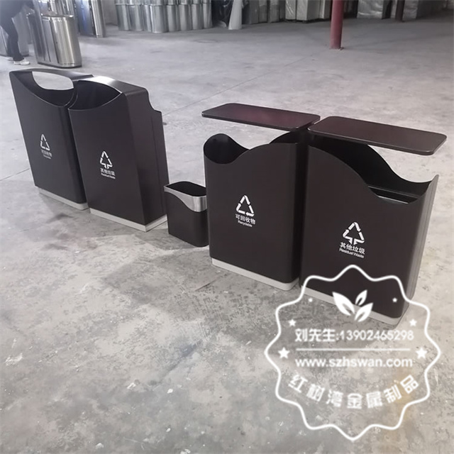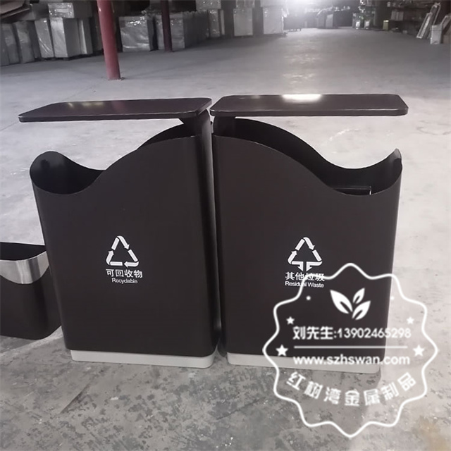產品材質:室內戶外噴塑套裝金屬分類垃圾桶采用201#,202#,304#優質不銹鋼材料模壓成型,堅固耐用;內外表面光潔,減少垃圾殘留,易于清潔;配置鍍鋅板內桶,便于垃圾清倒;