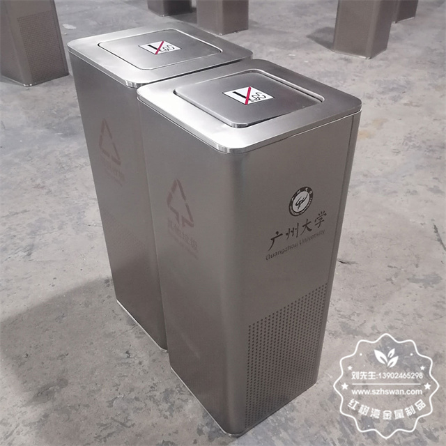 廣州大學(xué)室內(nèi)方形不銹鋼分類垃圾桶