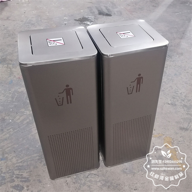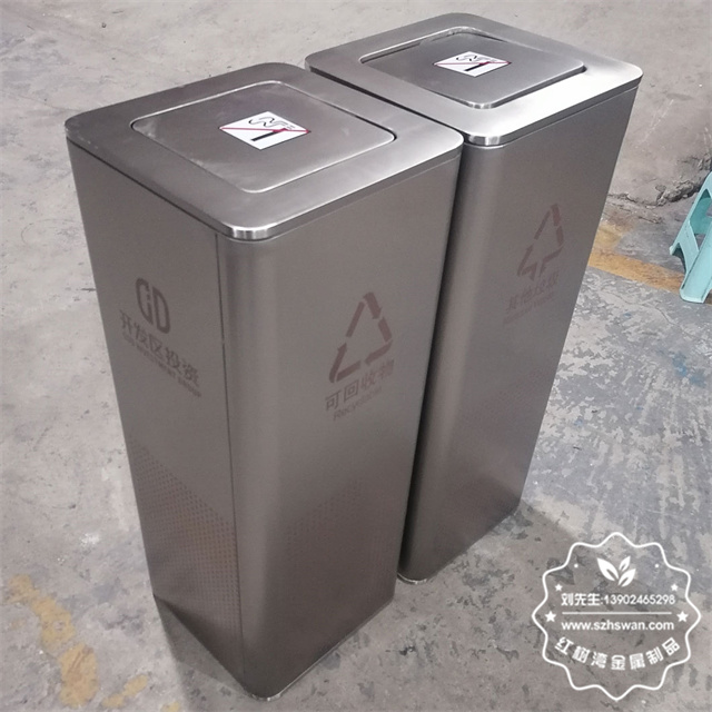 廣州大學(xué)室內(nèi)方形不銹鋼分類垃圾桶采用優(yōu)質(zhì)304不銹鋼無縫焊接成型,投口模具沖壓成型,邊角精細打磨拋光圓滑不割手,高檔大氣。