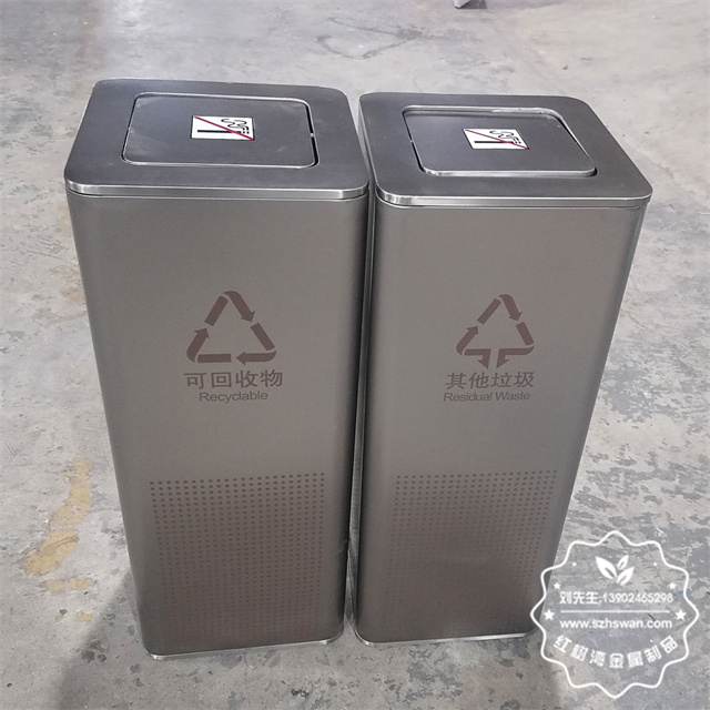 產(chǎn)品材質(zhì):廣州大學(xué)室內(nèi)方形不銹鋼分類垃圾桶采用201#,202#,304#優(yōu)質(zhì)不銹鋼材料模壓成型,堅固耐用;內(nèi)外表面光潔,減少垃圾殘留,易于清潔;配置鍍鋅板內(nèi)桶,便于垃圾清倒;