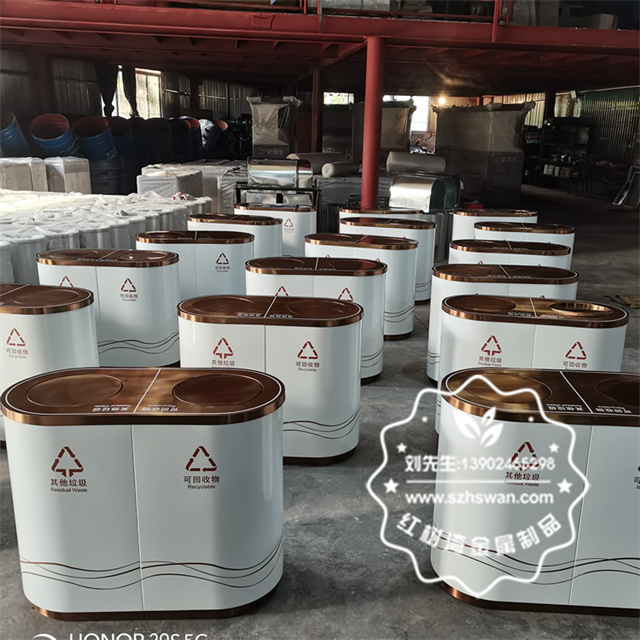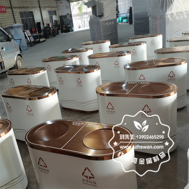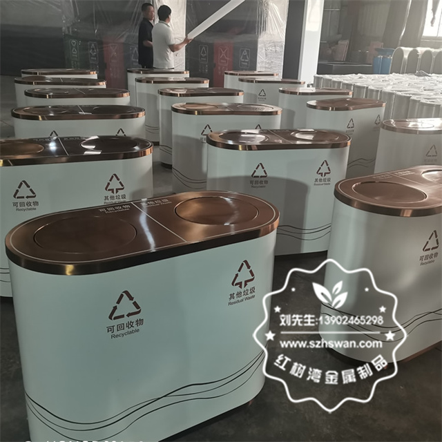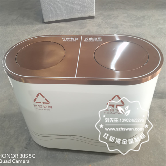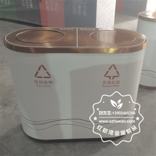 產品材質:電鍍搖擺帶蓋不銹鋼分類垃圾桶采用201#,202#,304#優質不銹鋼材料模壓成型,堅固耐用;內外表面光潔,減少垃圾殘留,易于清潔;配置鍍鋅板內桶,便于垃圾清倒;